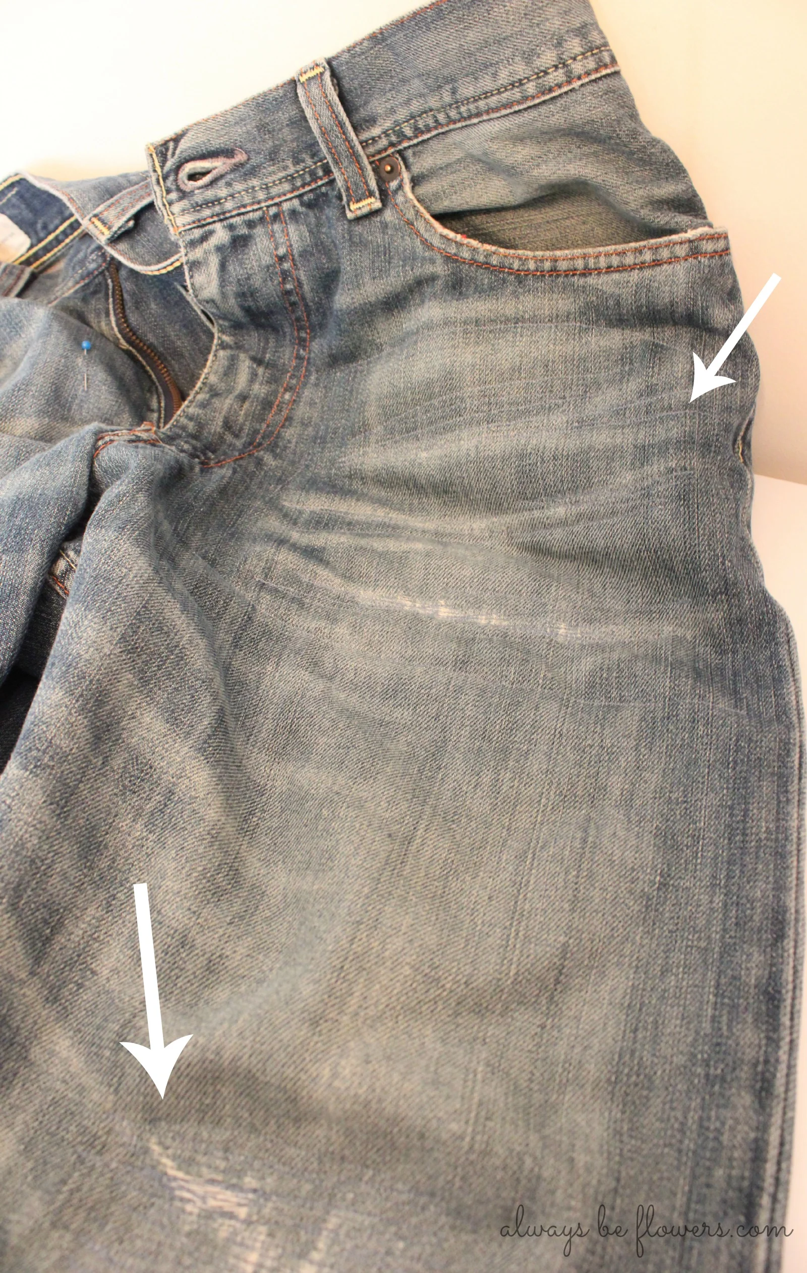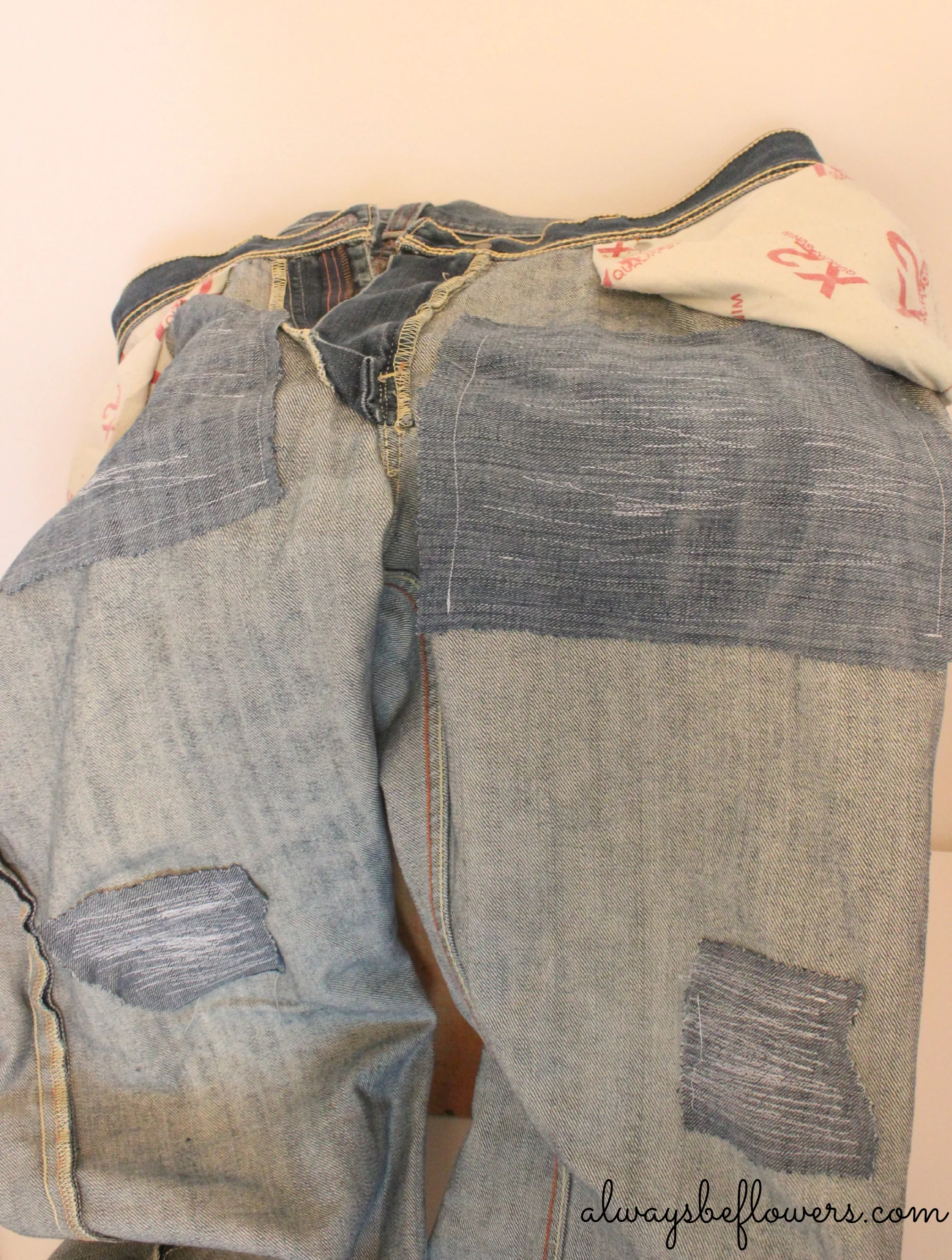 My husband kept commenting that he must have lost his jeans in our move (last year.) It turns out he lost them to my mending and up-cycling piles.