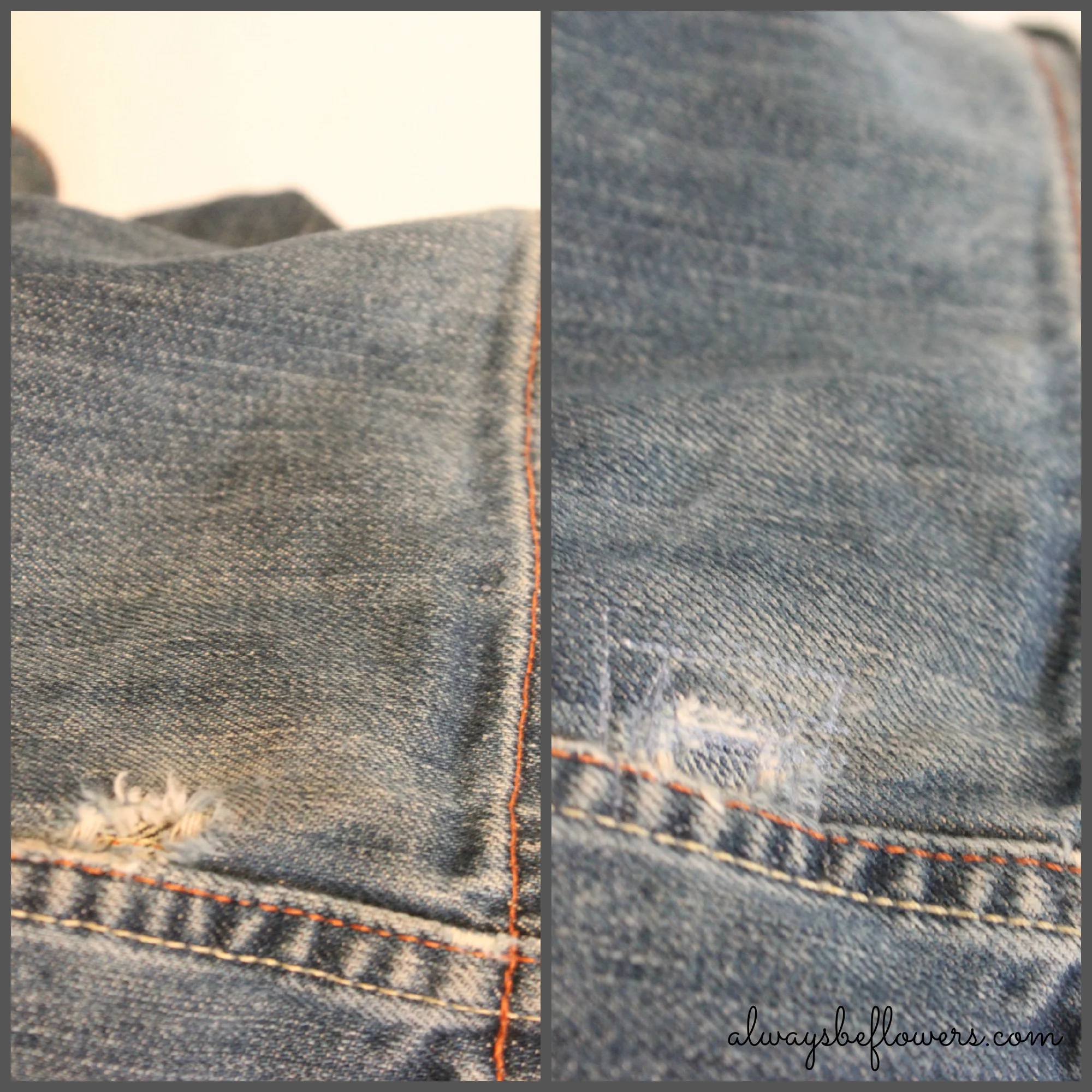 The stitching blends into the denim and reinforced the tattered jeans, which keeps them from over-ripping.